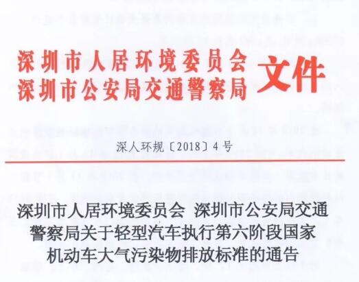 为防治机动车排气污染,进一步改善我市环境空气质量,保障人民身体健康,根据《中华人民共和国大气污染防治法》、《深圳经济特区机动车排气污染防治条例》(2017年修订)和《2018年“深圳蓝”可持续行动计划》(深府办规〔2018〕6号)的有关要求,经省政府同意,现就我市轻型汽车执行第六..