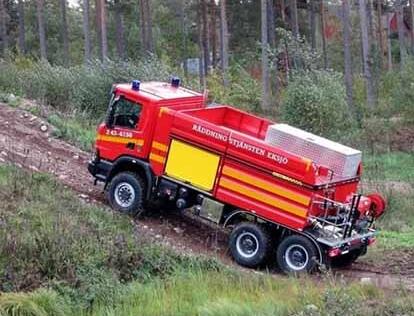 首辆斯堪尼亚全新P370XT 6x6森林消防车正式交付使用。这辆坚固的消防车采用斯堪尼亚P系列XT 6x6底盘,与普通消防车的区别在于上装与车身之间采用柔性连接,以应对各种地形的颠簸。如果使用刚性连接附件,上装的水罐可能会破裂。