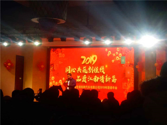 我公司a5娱乐下载于2019年1月30号举行年会,公司员工欢聚一堂,老总上台致辞,回首2018年总结经验,展望2019年,对消防车研发,服务及销售做出具体安排,年会顺利举行。