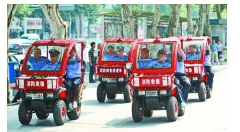 迷你巡逻消防车因其小巧灵活而被广泛应用于街道,社区,工厂,农村等道路相对狭隘地方,昨天,武汉硚口区宝丰街五辆消防摩托车和两辆电动巡逻车在辖区开始24小时不间断巡逻。每辆巡逻车配备五个灭火器、小喇叭、手电照明灯、消防水袋等消防设备。巡逻安保队员全部是社区志愿者,宝丰街派出所每天派民警负责带队巡逻。湖..