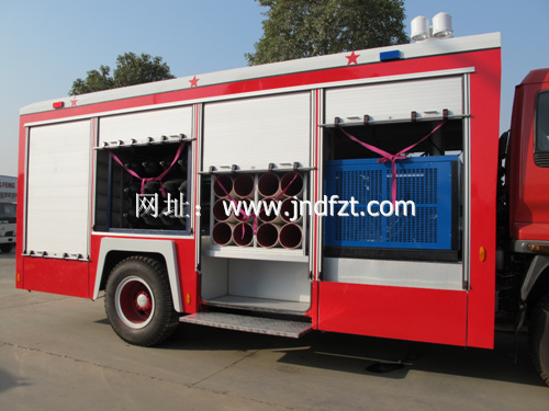 在灭火救援战斗中,为了有效实施灭火和救援,消防员常常需要深入充满烟雾、毒气的现场,为了保证消防员自身的安全,消防员必须配戴各种防护装备,而空气呼吸器是各类防护装备中应用为广泛的防护装备,供气消防车就是给防护装备提供气源,以供灭火等救援中消防战士呼吸用空气,供气消防车的供气原理是,利用高压空气压缩机将空气压缩、降温、过滤成合格的压缩空气填充到碳纤维瓶的过程,以下是供气消防车图片: