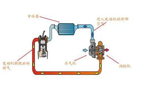 二、增压中冷技术改善燃烧的另一要素——氧气的利用率,增大进气量,有助于减少废气排放和提高燃油经济性。增压中冷(又称中冷增压)是由增压器和中冷系统组成。通过利用发动机排出的废气惯性冲力来推动涡轮室内的涡轮,涡轮有带动同轴的叶轮,叶轮压送由空气滤清器送来的空气,使之增压进入气缸。当发动机转速增快,废气加速排出,带动涡轮转速增快,叶轮就压缩更多的空气进入气缸,形成同步协调作用,终增加发动机的输出功率。
