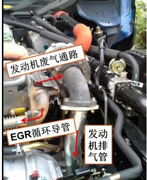 三、找EGR系统的废气循环导管和EGR阀门。废气循环导管与排气管相连,取一部分废气再循环,另一部分废气则从排气管排出。