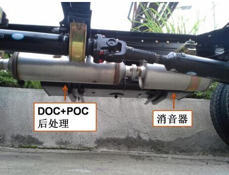 四、DOC+POC后处理可以减少尾气中的氮氧化合物(NOX)含量,并吸收大部分颗粒物,在排气前对尾气进行后一次净化。DOC(柴油机氧化催化转换器)促使尾气中的CO(一氧化碳)、HC+NOx(碳氢化合物和氮氧化物)氧化,形成二氧化碳、NO2和水。而POC(颗粒氧化催化转换器)可以捕捉尾气中的颗粒物,也就是PM——我们常说的某地M2.5爆表、雾霾严重罪魁祸首就是它。