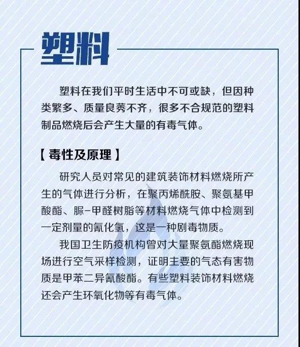生活中常见的一些物品,燃烧后会产生有毒气体,不仅对人体有害,也可能会引发火灾事故。快来看看,千万别烧着玩。它们就在你身边,可也许你并不知道燃烧后的它们这么毒,点下图了解。