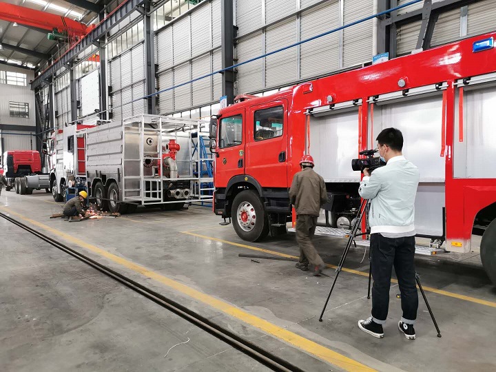 4月20日下午,随州电视台曾都新闻部记者前来江南公司应急特种车分厂进行现场拍摄采访,公司技术部熊部长、办公室主任丁维维接待了采访记者一行。