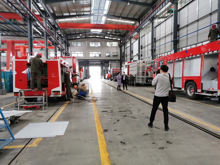 采访过程中,技术部熊部长详细介绍了江南公司新建的应急特种车分厂情况,为抢抓国家应急产业发展机遇,公司特筹建应急特种车分厂,大力推进应急特种车系列产品研发,落实公司高端应急特种车市场战略布局,提高公司在高端消防制造领域的竞争力。目前正在研发生产的有“奔驰”大流量水罐泡沫消防车、“曼”城市主战消防车、“上汽大通”高压细水雾消防车、多功能运兵车等多种车型。