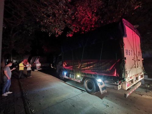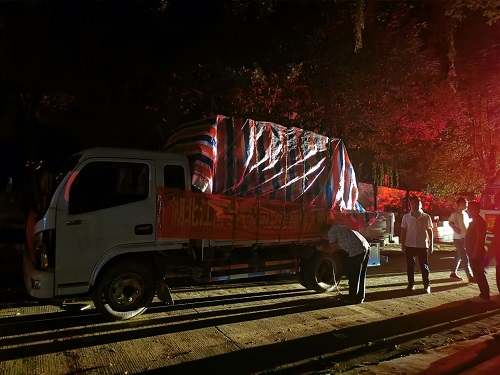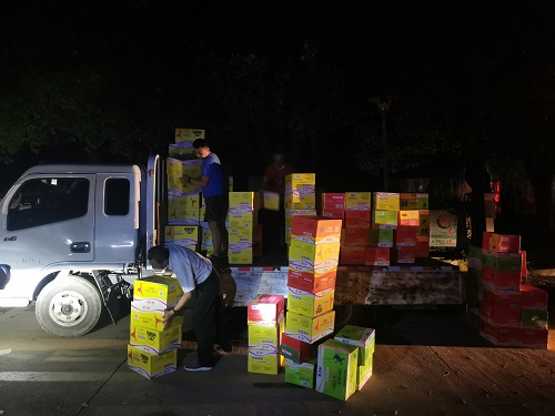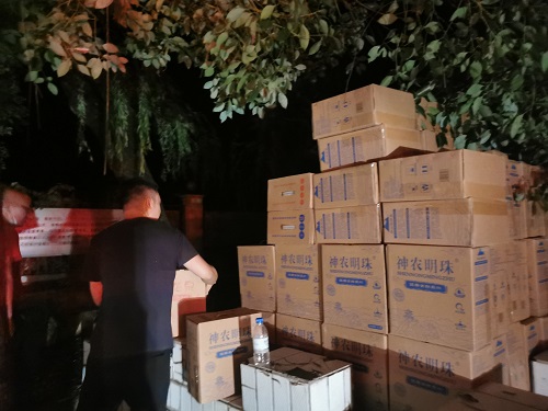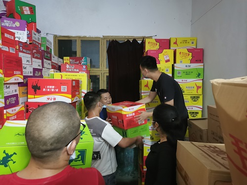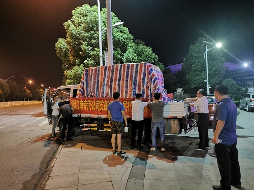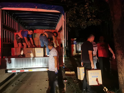 12日晚11点湖北江南抗洪救灾物资顺利运抵柳林镇中心学校。