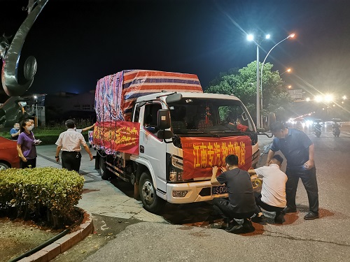 一方有难,八方支援!湖北江南迅速启动公司“爱心计划”,12日晚10点,为柳林镇募集的5万元捐款及价值5万元的物资已经全部集结完毕,在总经理甘子林的带领下连夜启程奔赴灾区。