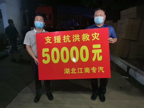 面对柳林镇的灾情,总经理甘子林动情地说:“洪水无情,江南有爱,为灾区人民提供帮助与支援,我们将义不容辞。湖北江南始终和受灾群众心连心,一如既往地积极履行社会责任与企业担当,在“感恩社会,传承爱心”的理念下,与受灾群众一起携手共渡难关”。