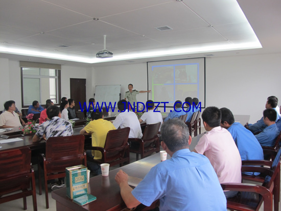 为进一步提高公司干部员工的消防安全意识, 今天上午,市公安武警消防中队官兵来到我公司讲授消防安全基本知识。公司各部门负责人、内勤人员等四十多人参加了消防安全知识培训,并现场示范演练。