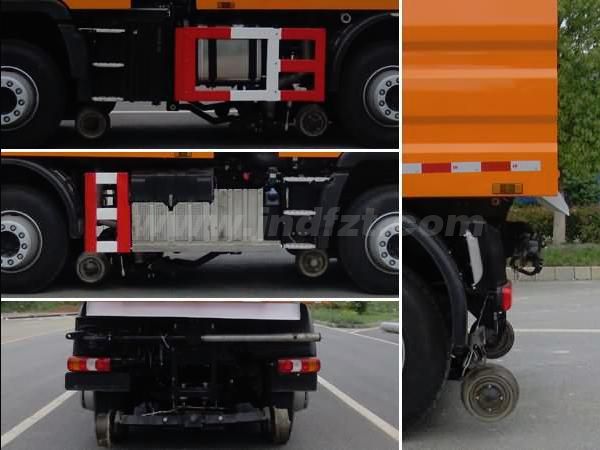 其它 | 前伸:90mm;该车主要装备吸尘装置,导向轮,用于铁路路面吸尘作业;ABS系统控制器型号:446 033 002 0,生产厂家:WABCO;侧面防护装置材料材质:Q235;连接方式:焊接;后下部防护装置由专用装置替代,专用装置离地高150mm. | ||