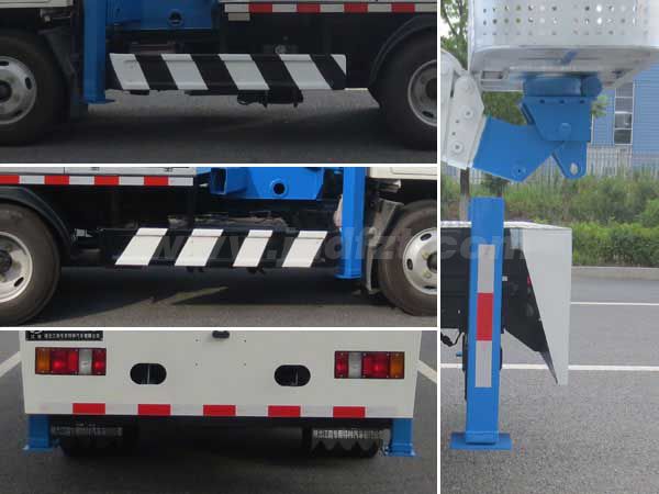 其它 | 后伸:380mm;侧面防护及后下部防护装置材料材质:Q235,连接方式:焊接加螺栓连接;后下部防护装置为整体式结构,离地高度:480mm;ABS系统型号:APG3550500A,ABS系统生产厂家:浙江亚太机电股份有限公司;主要专用装置为伸缩臂,用于抢修电力、通讯、路灯等高空作业. | ||