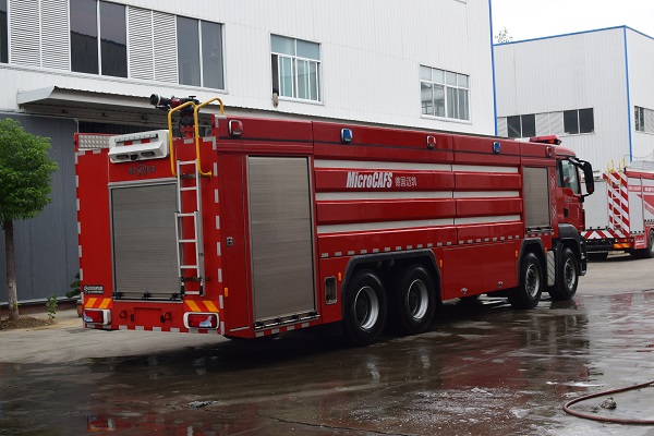 作战效能 | 1、单车垂直100米高楼层供给压缩空气泡沫,末端枪口压力不低于6bar,流量>1000升/分钟,供给到达时间不大于10分钟; 2、单车可出8支750升/分钟消防枪喷射压缩空气泡沫; 3、单车水平铺设500米干线水带,末端使用1000升/分钟消防枪喷射CAFS且枪口压力不低于6bar; 4、单车打灭>600个充分燃烧的橡胶轮胎火时长不超过3分钟。 | |