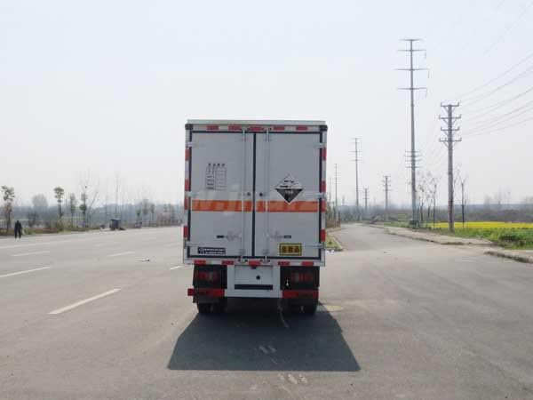 其它 | 随底盘选装驾驶室;厢体顶部封闭,不可开启;运输具有独立容器(瓶)包装的:氨溶液(氨水)或甲醛溶液或除锈磷化液(除锈磷化处理剂)或电池电池液或木馏油,类项号:8;厢体选装瓦楞板结构,厢体侧面选装开门型式及位置或不带侧开门,选装百叶窗,选装液压升降尾板(收起状态水平长度为290mm);该车为危险品货物运输车;仅采用前轮盘式制动器,前置排气管,子午线轮胎,限速装置的底盘,限速80km/h;所有发动机对应油耗值均为11.9L/100km;该车安装具有卫星定位功能的行驶记录仪;ABS系统型号:APG3550500A,ABS系统生产厂家:浙江亚太机电股份有限公司;侧面防护及后下部防护装置材料材质:Q235,连接方式:焊接加螺栓连接;后下部防护装置断面尺寸(宽×高):50×100(mm),离地高度:420mm. | ||