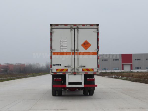其它 | 随底盘选装驾驶室;厢体顶部封闭,不可开启;运输介质:黑火药,压缩黑火药,电引爆雷管,爆破炸药,点燃导火索;运输介质类别和项号:1.1D,1.1D,1.1B,1.1D,1.4G,1.1G;运送危险货物车辆的类型:EX/Ⅲ型车辆;厢体侧面选装开门型式及位置或不带侧开门;仅采用前轮盘式制动器,前置排气管,子午线轮胎,限速装置的底盘,限速80km/h;后轴仅采用空气悬架;该车安装具有卫星定位功能的行驶记录仪;ABS系统生产厂家,型号 :焦作博瑞克控制技术有限公司,J ABS;侧面防护及后下部防护装置材料材质:Q235,连接方式:焊接加螺栓连接;后下部防护装置断面尺寸(宽×高):50×120(mm),离地高度:495mm. 该车后轴为采用空气悬架. | ||
