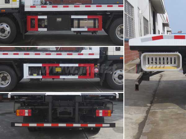 其它 | 托举质量500kg;随底盘选装驾驶室;侧面防护及后下部防护装置材料材质:Q235,连接方式:焊接;后下部防护装置断面尺寸(宽×高):50×100(mm),离地高度:430mm;ABS系统型号为XH-KQ4S4M-E01,生产企业为广州市西合汽车电子装备有限公司;型号为CM4XL-4S/4M,生产企业为广州瑞立科密汽车电子股份有限公司;主要专用装置为托举装置,用于道路故障车辆,城市违章车辆清理. | ||