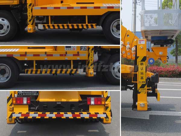 其它 | 后伸:350mm,290mm;随底盘选装驾驶室;选装后部工作斗样式;侧面防护及后下部防护装置材料材质:Q235,连接方式:焊接加螺栓连接;后下部防护装置断面尺寸(宽×高):30×105(mm),离地高度:390mm;ABS系统型号:APG3550500A,ABS系统生产厂家:浙江亚太机电股份有限公司;主要专用装置为伸缩臂,用于抢修电力、通讯、路灯等高空作业. | ||