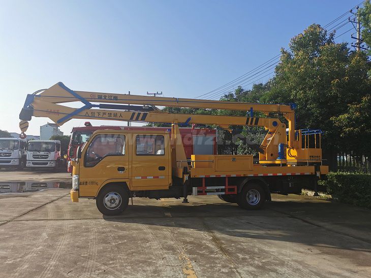 其它 | 前伸1285mm;后伸310mm;随底盘选装驾驶室;吊钩为选装件;选装臂头样式;侧面防护及后下部防护装置材料材质:Q235,连接方式:焊接加螺栓连接;后下部防护装置断面尺寸(宽×高):30×200(mm),离地高度:490mm;随底盘选装制动系统:装液压制动系统时,ABS及其控制器型号/生产企业对应关系为:APG3550500A/浙江亚太机电股份有限公司,CM4YL/广州瑞立科密汽车电子股份有限公司;装气压制动系统时,ABS及其控制器型号/生产企业对应关系为:CM4XL-4S/4M/广州瑞立科密汽车电子股份有限公司;主要专用装置为折叠臂,用于抢修电力、通讯、路灯等高空作业. | ||