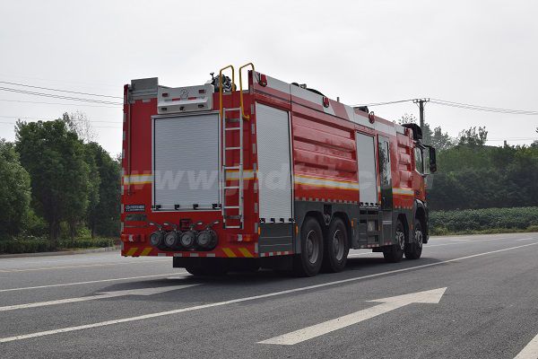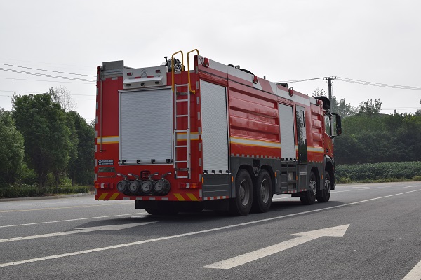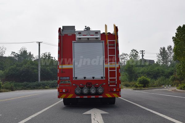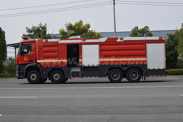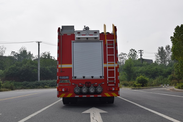 其它 | ABS型号:EB5006;ABS生产企业:WABCO;所用材料材质、连接方式以及后部防护装置的主要尺寸参数(断面尺寸和离地高度):整体式侧后防护结构,材料材质:Q235,后防护离地高度:430mm;专用功能及装置:主要专用装置有消防泵、消防炮;后伸尺寸:260mm;其他说明:水罐容积:18.4立方米,水罐尺寸:前端:790×2540×1560mm,后端:4050×2540×1570mm;有后向座椅4个; | ||