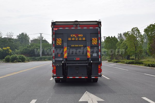 其它 | ABS型号:44600XXXX0;ABS生产企业:威伯科汽车控制系统(中国)有限公司;所用材料材质、连接方式以及后部防护装置的主要尺寸参数(断面尺寸和离地高度):整体式侧防护结构,后防护装置材料:Q235,分为三段,每一段的截面尺寸均为:120×60mm,与车辆连接方式:螺栓连接和焊接,后防护离地高度:445mm;专用功能及装置:主要专用装置有消防器材,液压尾板;后伸尺寸:205mm;其他说明:液压尾板收起时水平长度为310mm; | ||