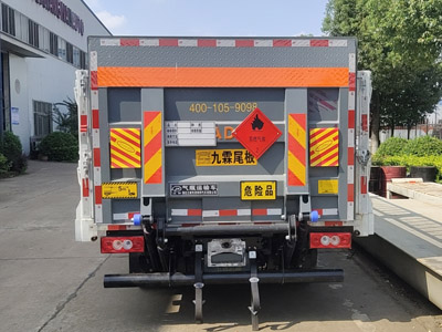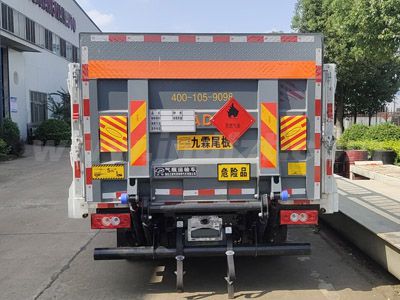 其它 | ABS系统控制器型号/生产企业:ABS-E/威伯科汽车控制系统(中国)有限公司,ABS-VI·E/广州瑞立科密汽车电子股份有限公司;YF8/武汉元丰汽车电控系统有限公司;安装有限速装置;限速装置限速(km/h):80;安装有具有卫星定位功能的行驶记录仪;随底盘选装驾驶室;选装厢体外观,选装无栅栏,选装后部结构;起重尾板为选装件(收起状态水平长度为280mm),尾板质量为350kg;选装不同厂家尾板以及尾板外观;仅采用底盘3360mm轴距;该车选装ETC车载装置;发动机/油耗申报值(L/100km)对应关系为:F2.8NS6B131/11.5,Q28-130E60/11.5,F2.8NS6B156/11.5,D25TCIF1/11.5;侧面防护及后下部防护装置材料材质:Q235,侧面防护连接方式:焊接连接;后下部防护装置连接方式:焊接加螺栓连接,断面尺寸(直径):Φ110(mm),离地高度:325mm;不带起重尾板时,后防护连接方式:焊接连接;后下部防护装置断面尺寸(宽×高):50×100(mm),离地高度:440mm;运输独立容器(瓶)包装的介质类项号为:2.1,2.2;该车为危险品货物运输车;仅采用前轮盘式制动器,前置排气管,子午线轮胎;转向轮安装爆胎应急防护装置; | ||