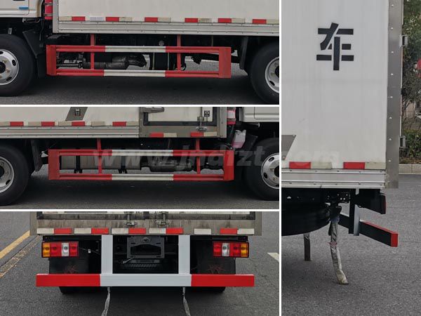 其它 | ABS系统型号:APG3550500A,ABS系统生产厂家:浙江亚太机电股份有限公司;选装ABS系统型号:3550B500,ABS系统生产厂家:浙江亚太机电股份有限公司;选装ABS系统型号:VIE ABS-II,ABS系统生产厂家:浙江万安科技股份有限公司;安装有限速装置;限速装置限速(km/h):80;安装有具有卫星定位功能的行驶记录仪;随底盘选装驾驶室;选装燃油箱,电瓶,尿素罐,储气筒左右安装位置;厢体侧面选装开门型式及位置,选装后部结构;选装其它厂家功率相当的制冷机组;该车型可选装直接供电ETC车载装置;发动机与油耗申报值(L/100km)对应关系为JX4D30B6H/10.9,JX493ZLQ6D/10.9;侧面防护及后下部防护装置材料材质:Q235,侧防护连接方式:焊接连接;后下部防护装置连接方式:焊接加螺栓连接,断面尺寸(宽×高):50×100(mm),离地高度:400mm;车厢顶部封闭且不可开启;运输介质类项号为6.2;该车为危险品货物运输车;仅采用前轮盘式制动器,前置排气管,子午线轮胎;转向轮安装爆胎应急防护装置; | ||