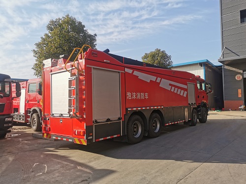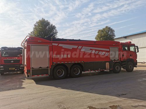 其它 | 罐体总容积:18.000立方米,水罐容积:13.000立方米,水罐尺寸:3840×2480×1430mm,泡沫液罐容积:5.000立方米,泡沫液罐尺寸:1475×2480×1430。整体式侧防护结构,后防护装置材料:Q235,截面尺寸:120×120mm,与车辆连接方式:螺栓连接,后防护离地高度:380mm。ABS系统控制器生产企业/型号为威伯科(上海)管理有限公司/4460046300。主要专用装置有消防泵、消防炮。 | ||