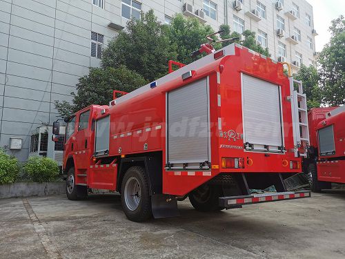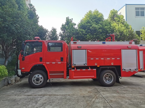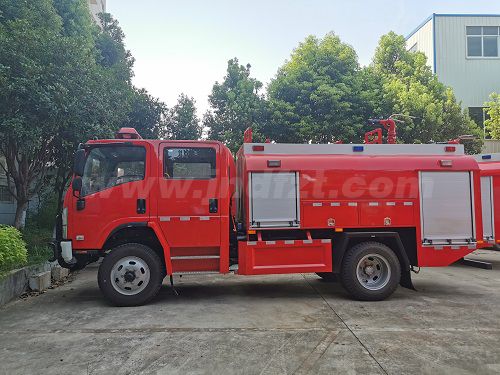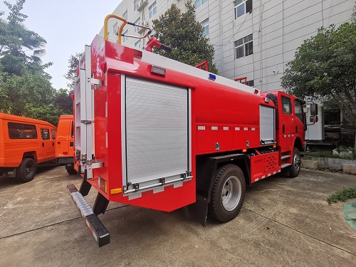 其它 | 水罐容积:3.4立方米,椭圆罐体,罐体尺寸(长×长轴×短轴):1720×2000×1200mm。整体式侧防护结构,后防护装置材料:Q235,截面尺寸:100×100mm,与车辆连接方式:螺栓连接,后防护离地高度:474mm。前伸:155。ABS生产企业:广州瑞立科密汽车电子股份有限公司,型号:CM4XL-4S/4M。主要专用装置有消防泵、消防炮。 | ||
