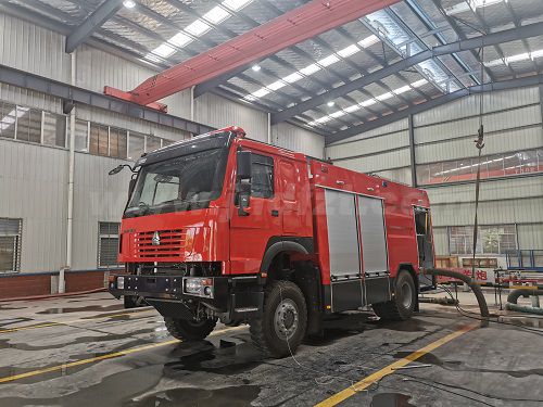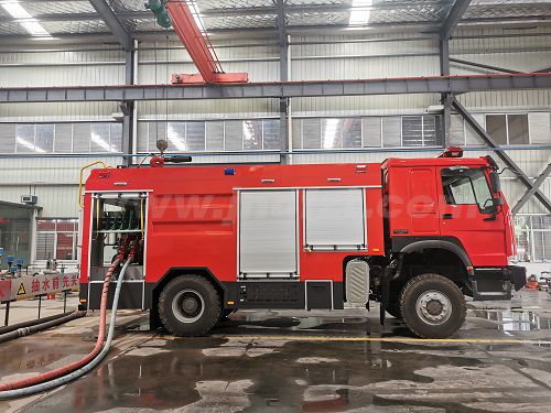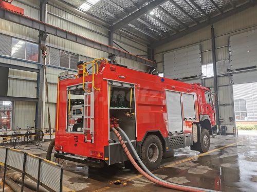 其它 | 水罐容积:5.500立方米,罐体为“横T”字形罐,前端尺寸:1000×1300×1200mm,后端尺寸:1400×2500×1200mm。整体式侧防护结构,后防护装置材料:Q235,截面尺寸:120×120mm,与车辆连接方式:螺栓连接,后防护离地高度:450mm。ABS生产企业为威伯科汽车控制系统(中国)有限公,型号为4460046300。主要专用装置有消防泵、消防炮。 | ||