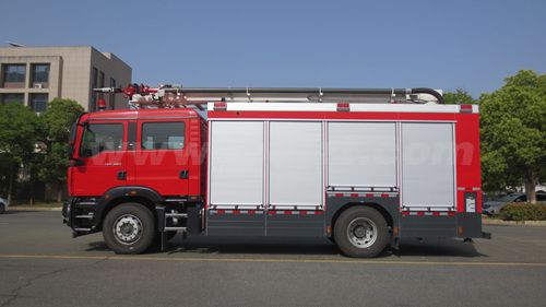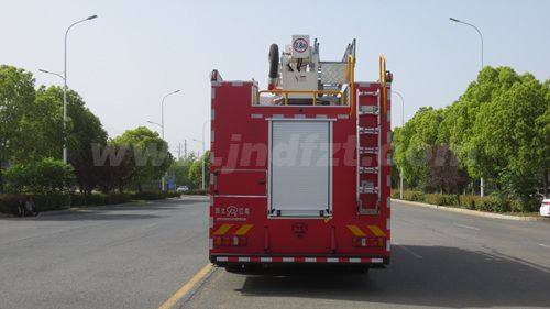 江特牌JDF5190GXFAP35/Z6型压缩空气泡沫消防车是我公司采用重汽汕德卡ZZ5206N471GF5(国六)消防车专用底盘改装而成,整车含压缩空气泡沫系统、液压系统、举升系统、电气系统等组成。顶端消防炮可伸展工作高度达15米,其消防炮既可喷射水也可喷射泡沫,具有射程远、流量大、可轻松的占据高空向下喷射灭火剂,配备配13米登高梯,3吨30米电动绞盘。该车一车多用,主要针对辖区内大跨度厂房火灾、中高层小区、居民楼建筑火灾、油罐类火灾等灭火作战任务。广泛适用于城镇公安消防队、石油化工、厂矿企业、社区、森林、港口、码头等部门,可迅速接近火场展开灭火战斗,扑救各种火灾,是理想的消防装备。