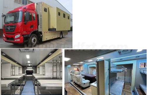其它 | 随底盘选装驾驶室,随底盘选装限速装置,限速89km/h;选装整车内部布局;仅采用底盘5800mm轴距。主要专用装置为床铺、物品柜、电视机,用于野外宿营。仅驻车状态下厢体两侧可扩展。侧防护装置为整体式结构;后下部防护装置材料材质:Q235,连接方式:螺栓连接;后下部防护装置断面尺寸(宽×高):120×120(mm),离地高度:460mm;ABS型号/生产厂家:ABS 8/东科克诺尔商用车制动系统(十堰)有限公司,ABS-E 4S/4M/采埃孚商用车系统(青岛)有限公司,J ABS/焦作博瑞克控制技术有限公司;厢体内设置办公椅,仅在作业时使用,行驶状态中不使用;选装整车外观。 | ||