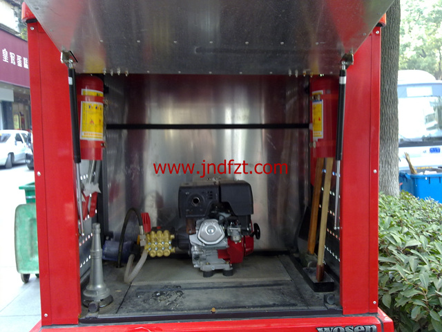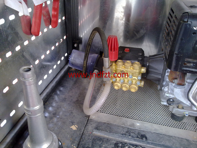 1、 不锈钢水箱及压力泵:不锈钢泡沫箱可以根据火险的起火燃烧材料性质,注满水或泡沫。水箱可以装400升的水,泡沫箱可装25升泡沫。大功率压力泵,是水枪喷射压力的动力源。•