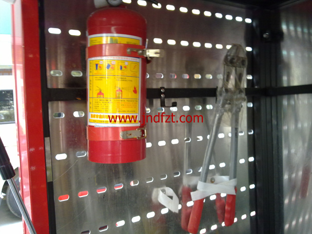 我公司的电动消防车上还配有多种消防工具,譬如:铁铲、钢斧、撬棍、与消防栓对接的消防水带以及可移动型干粉灭火器,可以在火灾事故发生时,砍断钢筋、破门撬锁有着很好的作用,在抢险救灾的时候得心应手。也可以在水枪灭火的同时,采取多人使用干粉灭火器同时扑救不同位置的着火点。这样提升了灭火的速度,阻碍了火势多点蔓延的趋势,更好地降低火险造成的损失。也为专业消防队的到来赢得宝贵的时间。